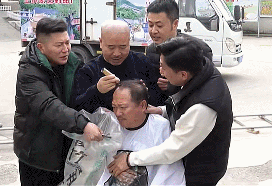 谢广坤被四个人摁住以后,拼命挣扎:“我的头发,和你们什么关系”?